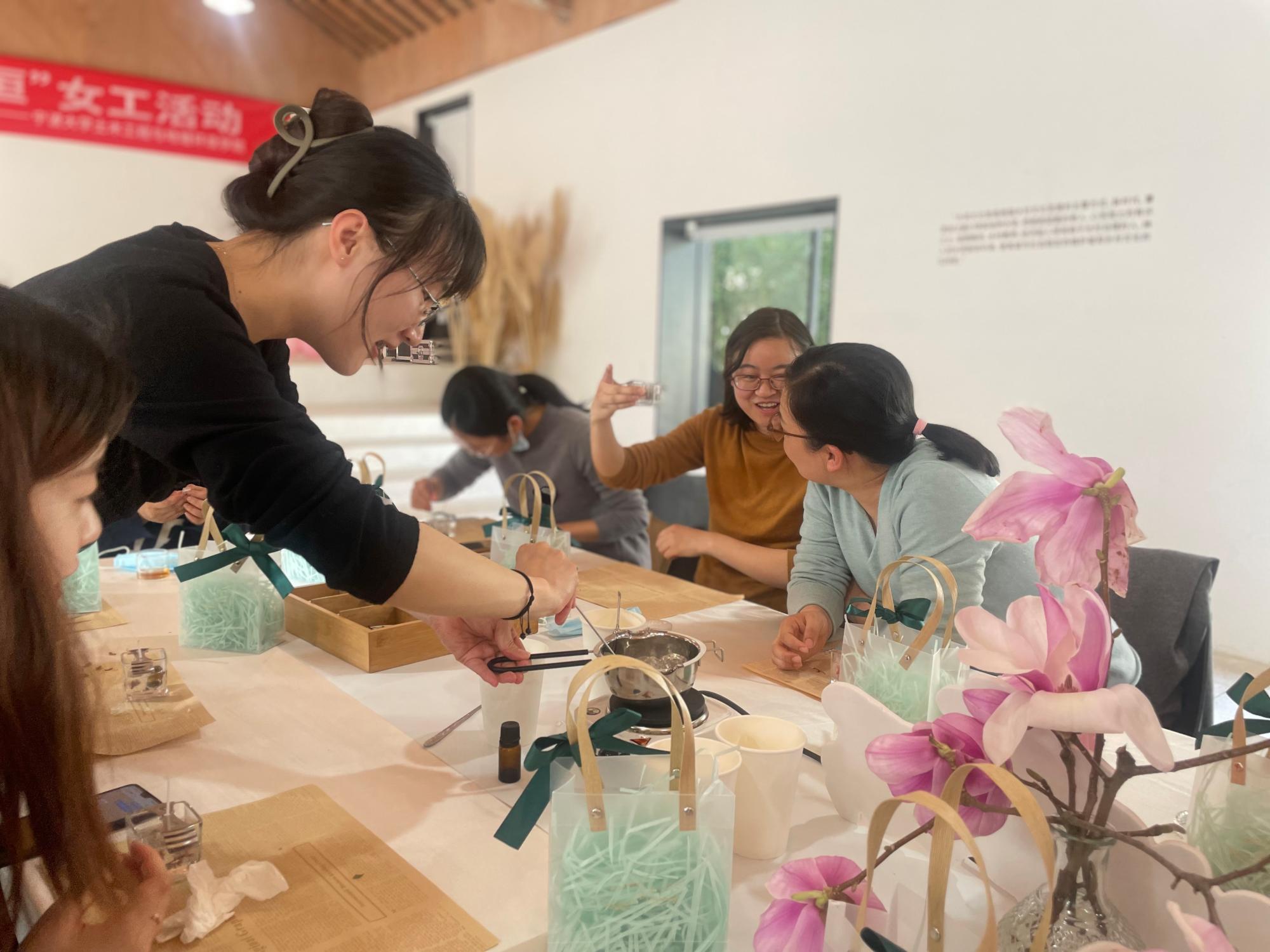 在这乍暖还寒的初春,3月8日下午,为充分展现女教工的巾帼风采,进一步提升女教工的审美意识和丰富女教工业余生活,污漫 分工会举办了“春日暖香,美丽永恒”手作香薰蜡烛女工活动,院党委副书记朱剑琼以及女教工共三十余名参加。