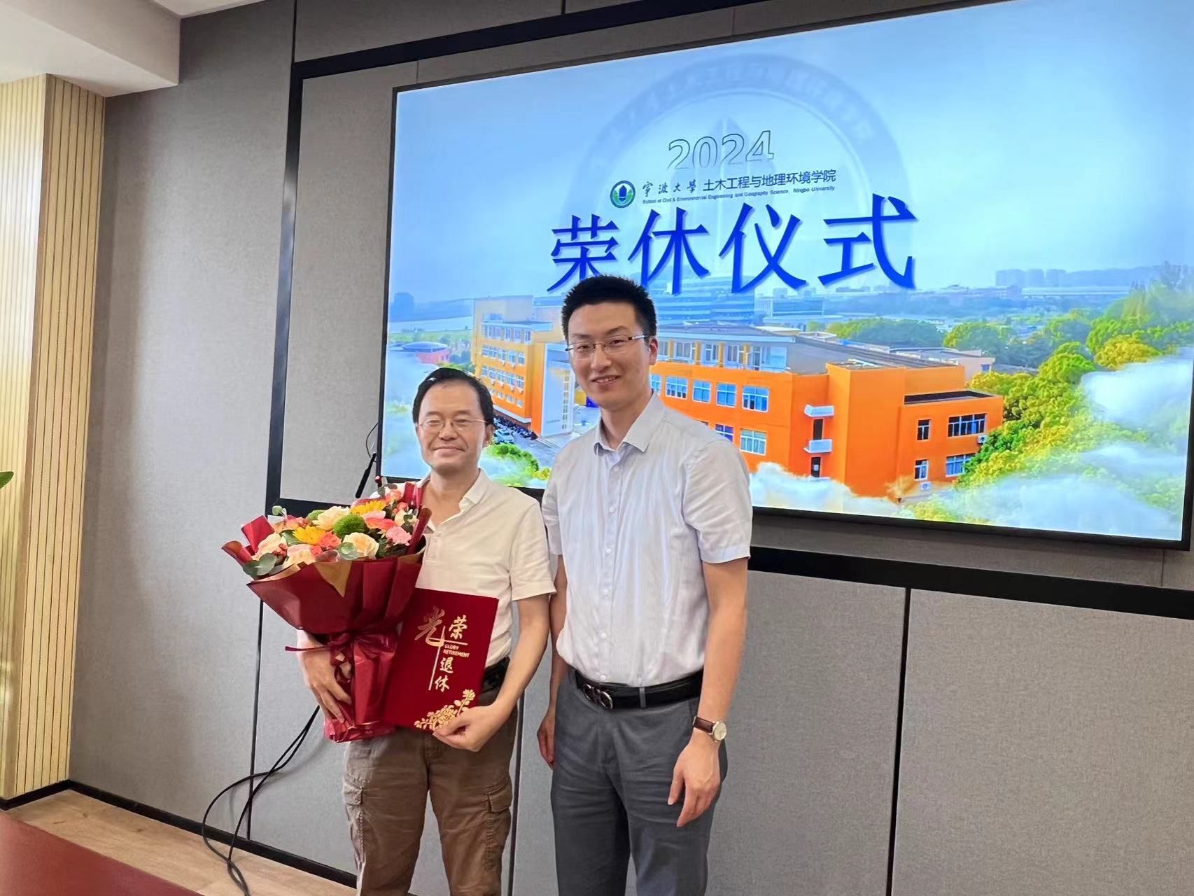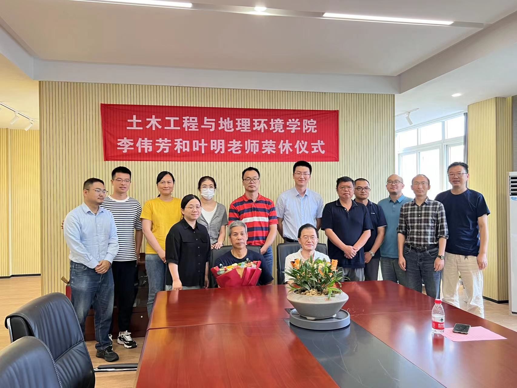 6月25日下午,土木工程与地理环境学院李伟芳和叶明老师荣休仪式在学院408会议室举行,向光荣退休的地理系李伟芳和叶明老师送上深深的祝福和敬意。仪式由学院执行院长李加林主持,学院副院长章子华、地理系主任马仁锋及土木系教师学生代表出席仪式。
